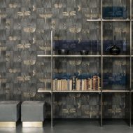 An utterly entrancing wallcovering, Ligna Wings is a unique design to make a statement. The metallic finish gives the butterflies and insects a luxe image. The wood textured background grounds the design. Available in four luxurious colours of gold, bronze, silver, and copper – please enquire for all colour options. Width 90cm, straight match 64cm. Price is by the metre.
